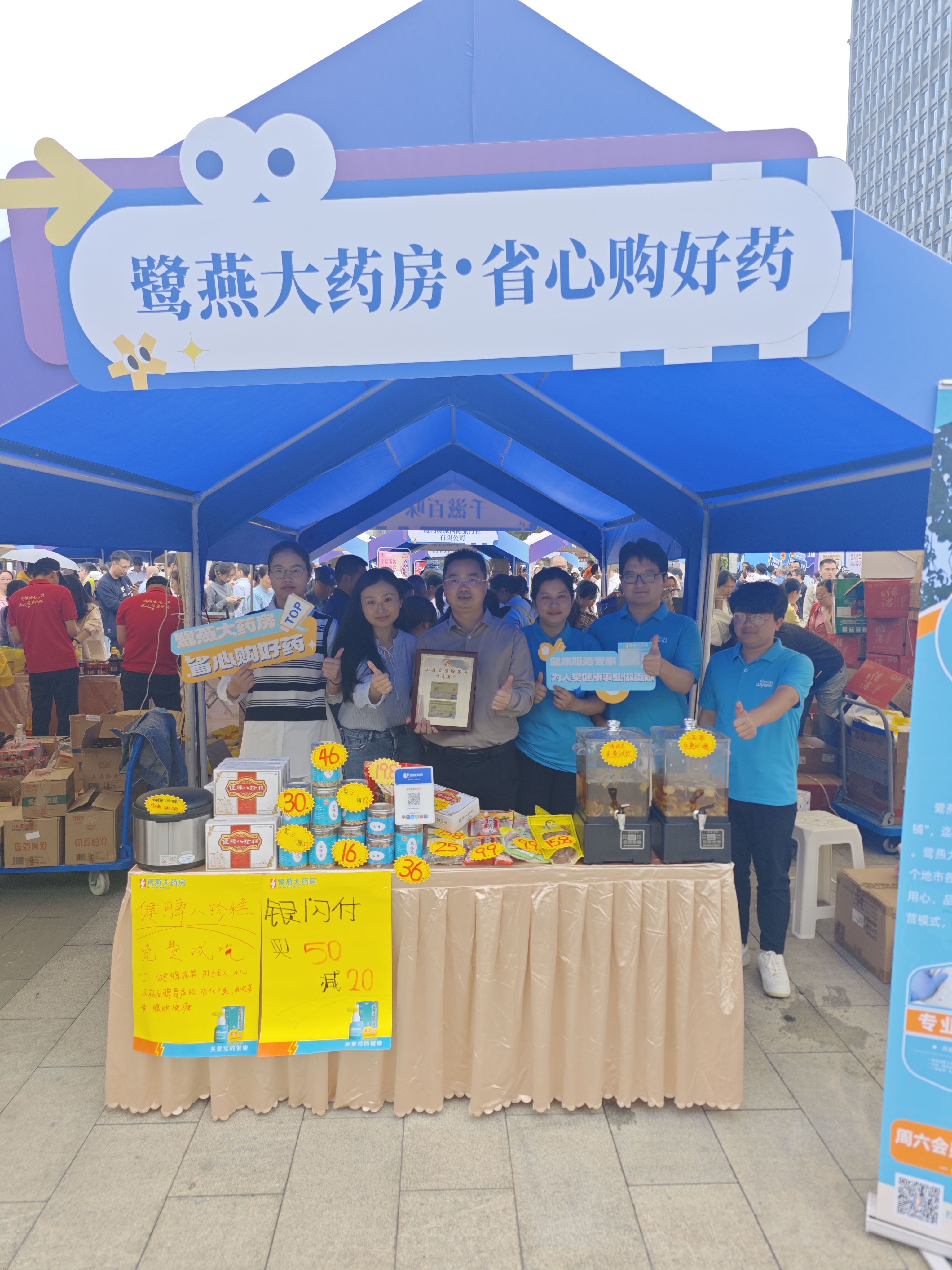 4月13日,由廈門市總工會指導、市機關事業工會聯合會主辦的“惠工聚益 共享美好”2025年工會集市活動在五一廣場盛大啟幕。廈門鷺燕大藥房作為2025年“工會會員服務卡特惠商戶”首批新簽約的10家優質企業正式獲得授牌,并攜多項健康惠民服務亮相。
