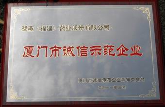 鷺燕(福建)藥業(yè)股份有限公司榮獲:“2008—2009年度廈門市誠信示范企業(yè)”的稱號