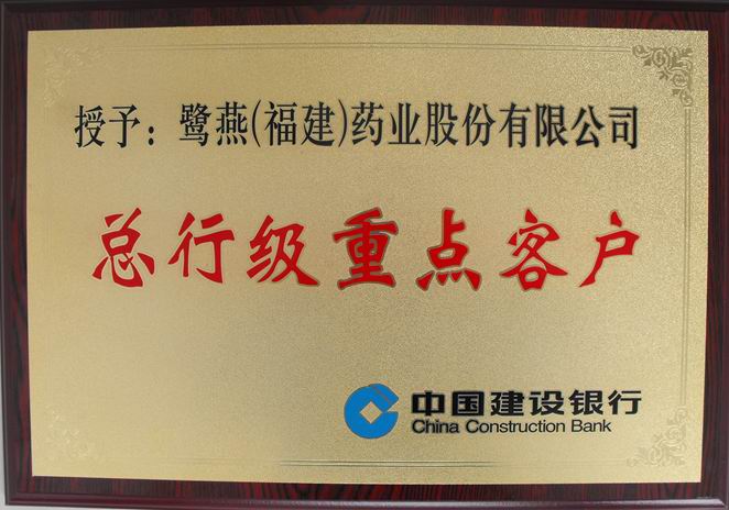 基于鷺燕企業(yè)優(yōu)異的業(yè)績表現(xiàn)、穩(wěn)健的經(jīng)營管理風格和良好的資信情況,經(jīng)過中國建設銀行的嚴格審評,近日,鷺燕(福建)藥業(yè)股份有限公司被認定為中國建設銀行“總行級重點客戶”。
